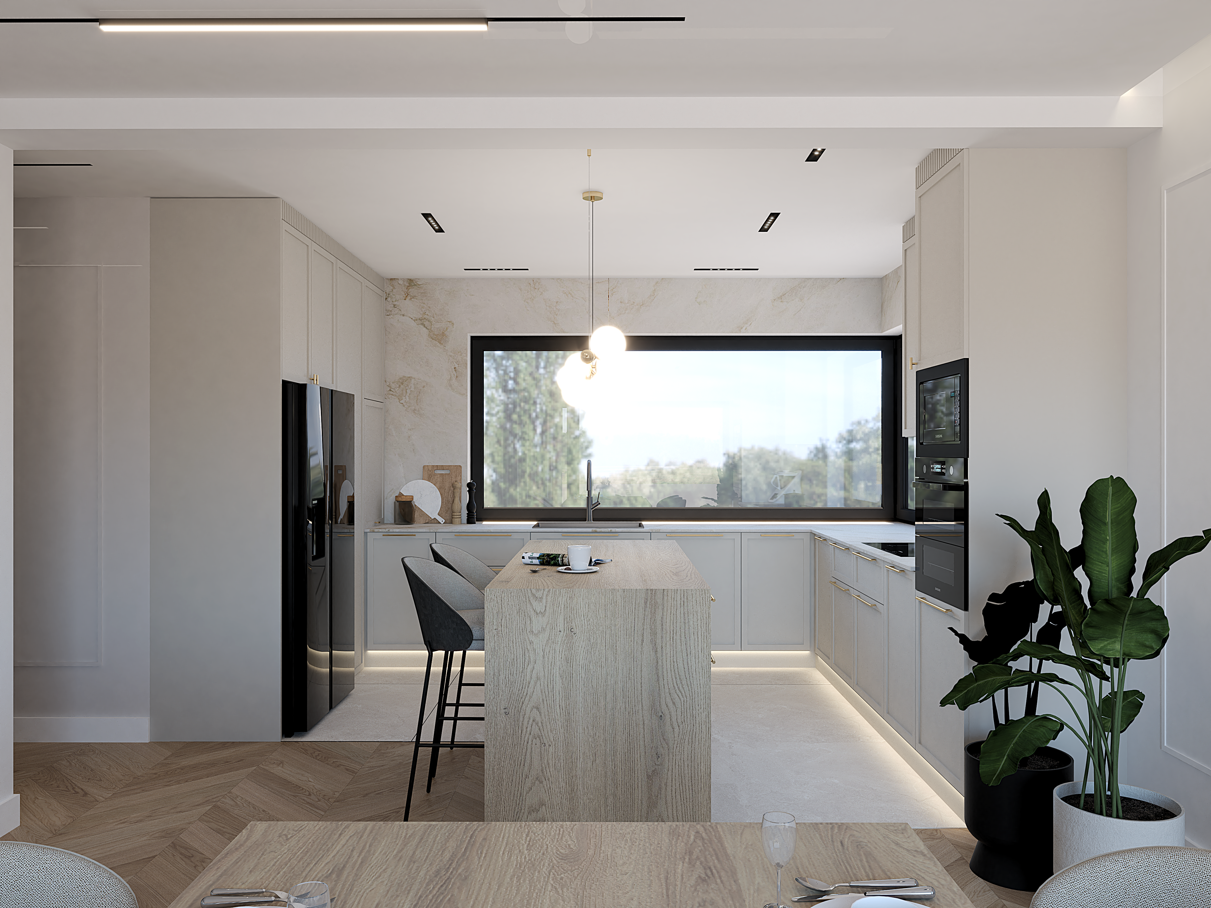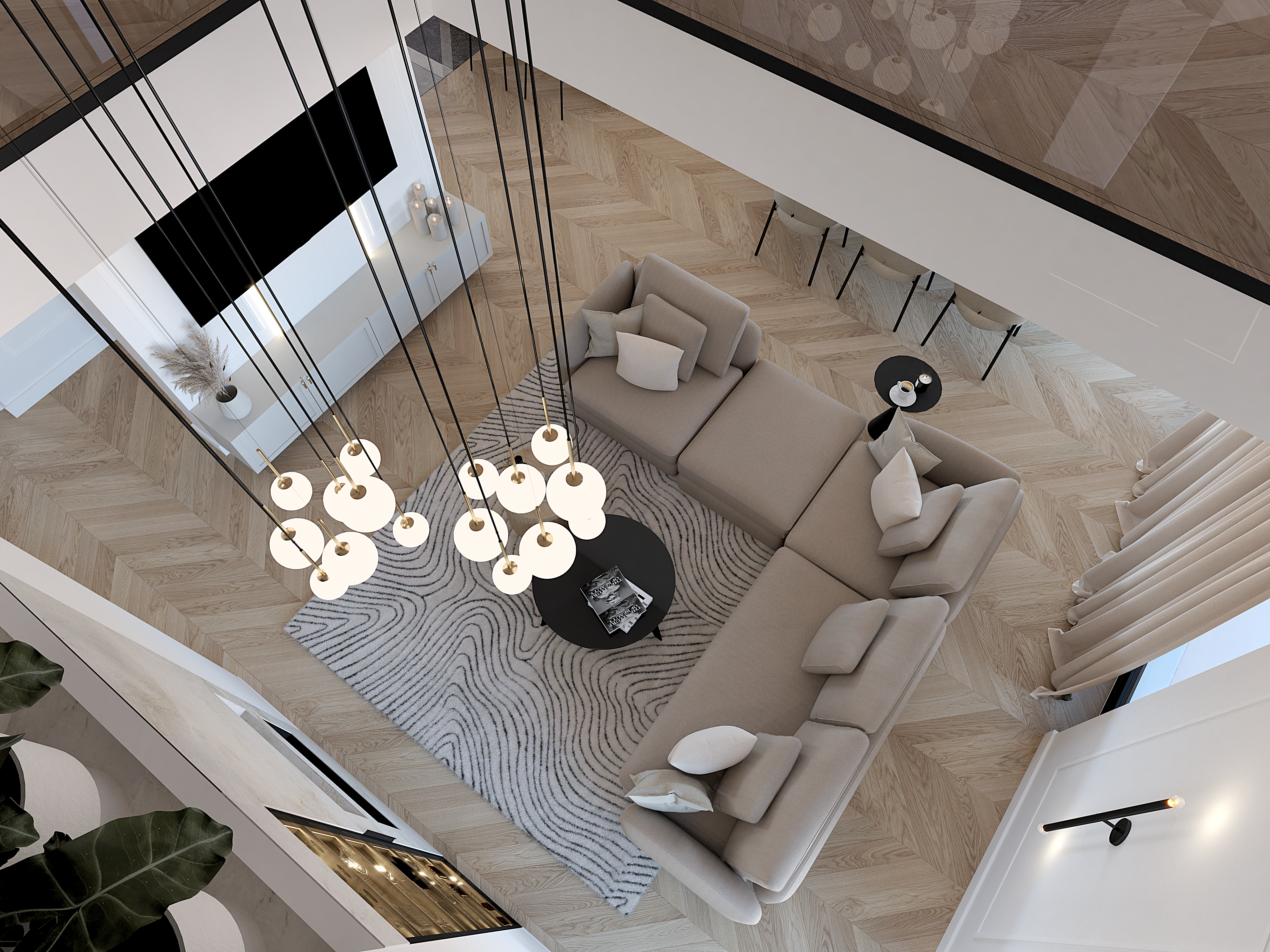 Czyli fotorealistyczne widoki (rendery) pokazujące charakter wnętrza, kolorystykę, fakturę materiałów, oświetlenie, światłocień itd. Ideą wizualizacji jest to aby pokazać projektowaną przestrzeń w jak najbardziej prawdziwej, realnej formie. Nie ograniczam ilości wizualizacji na dane pomieszczenie, wykonuję tyle ujęć, aby wszystko było widoczne.